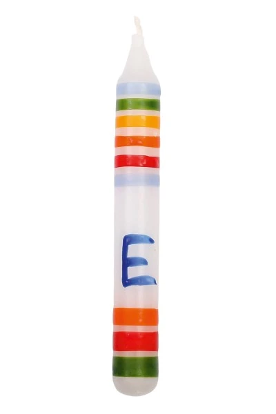 Eine Kerze mit dem Buchstaben E in schönen lebendigen Farben. Die tolle kleine Kerze ist wunderbar fröhlich gestaltet und begeistert mit schönen Kontrasten.