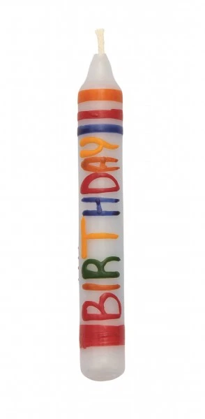 Eine Ahrens Happy Birthday Kerze in tollem Hellblau. Die tolle kleine Kerze ist wunderbar fröhlich gestaltet und begeistert mit kunterbunten Buchstaben.