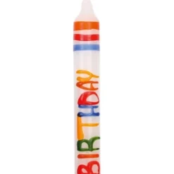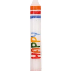 Eine weiße Kerze mit bunten Ringeln. Hübsche Kerzen peppen Geburtstagsringe noch einmal besonders auf!
