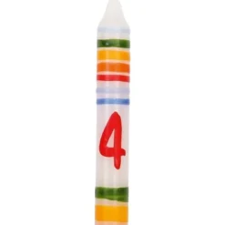 Eine Ahrens Kerze mit der Zahl 4 in schönen lebendigen Farben. Die tolle kleine Kerze ist wunderbar fröhlich gestaltet und begeistert mit schönen Kontrasten.