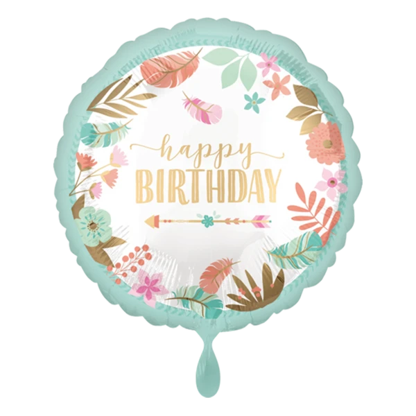 Boho Birthday Girl heißt dieser schicke Geburtstagsballon im aktuellen Look. Der runde Folienballon mit Aufschrift wird dem beschenkten Geburtstagskind sicher eine tolle Überraschung bereiten. Auch eine super Dekorationsidee für Feste. Ballons können mit Helium gefüllt werden und mit Gewichten am Band auf den Tischen platziert werden.
