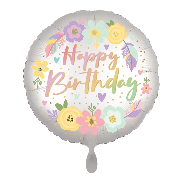 • Motiv Folienballon Boho Birthday Satin Flowers