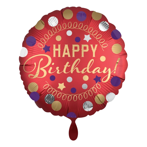 Der Motivballon Red Satin Party mit stimmungsvollen Motiven auf rotem Untergrund. Der hübsche runde Folienballon mit goldener Aufschrift wird dem beschenkten Geburtstagskind sicher eine tolle Überraschung bereiten. Auch eine super Dekorationsidee für Feste. Ballons können mit Helium gefüllt werden und mit Gewichten am Band auf den Tischen platziert werden.