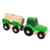 Eine Schienen-Acht mit Holzbrücke in der Mitte, ein Holz-Zug mit 2 Waggons, ein Holz-Bahnhof und Bäume. • Geeignet für Kinder ab 2 Jahren