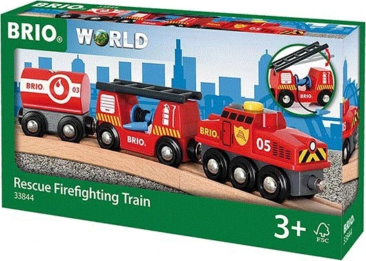 Aus dem Weg die Feuerwehr ist da! Der Feuerwehr-Löschzug von BRIO stellt die perfekte Ergänzung zum Fuerwehrthema der Holzeisenbahn dar. Mithilfe des Knopfes auf der Lok kann Ihr Kind die Waggons schnell abkoppeln, um das Feuer rechtzeitig löschen zu können. Mit dem ausziehbaren Feuerwehrschlauch und der aufklappbaren Leiter haben selbst die höchsten Flammen keine Chance.