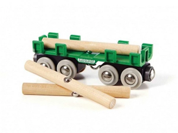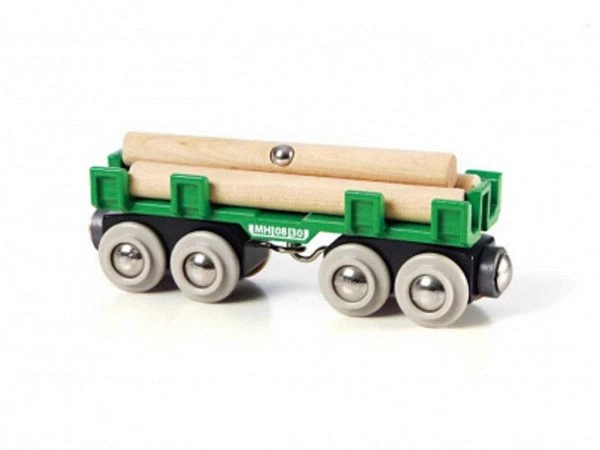 Stapeln, befestigen und abfahren. Ist das Holz erst einmal auf dem Wagen verladen, kann es losgehen! Mit seinen acht Rädern liegt der Langholzwagen bei seiner Fahrt aus dem Wald sicher in der Spur, und nichts kann darauf verrutschen. Lässt sich mit der BRIO Holzeisenbahn kombinieren.