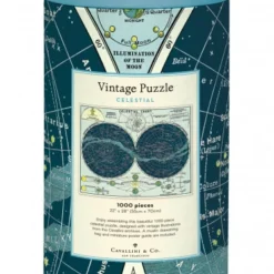 Mit seinem Vintage Puzzle Celestial 1000 Teile bringt Cavallini & Co. eine wunderschöne Sternenkarte auf den Wohnzimmertisch. Für alle Fans von Astrologie und den Weiten des Weltraums ein absolutes Muss!