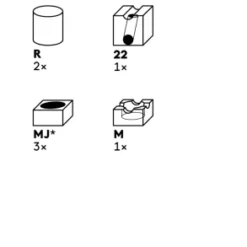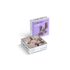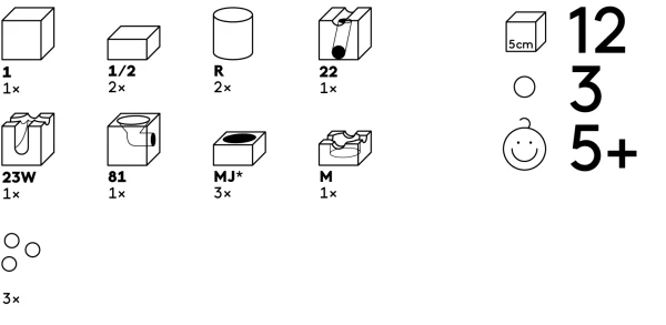 Dieses Set enthält 16 Elemente aus Holz und 3 Murmeln aus Glas.