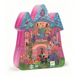Dieses Puzzle von Djeco lässt Mädchenherzen höher schlagen – denn in dem Märchenschloss gibt es viel zu entdecken! 54 Teile liegen bereit und warten darauf zu einem tollen Bild zusammengefügt zu werden. Ein spannendes Puzzle für Kinder ab 5 Jahren. Sie können Teil für Teil zusammensetzen bis die Prinzessinnen, die Feen, die Schlosstürme, die lustigen Tiere und noch vieles mehr zu sehen sind. Mit jedem Puzzleteil, das dazu kommt, gibt es etwas Neues zu entdecken. Ist das Motiv komplett, können fantastische Geschichten mit den vielen Prinzessinnen, Rittern und Fabelwesen ausgedacht werden: Ist das Schloss riesig – hast Du schon alle Zimmer entdeckt? Und was all die Prinzessinnen wohl treiben? Hast Du schon die kleinen Feen entdeckt? Gerade für die kalte Jahreszeit ein prima Zeitvertreib für Kinder, durch den Konzentration und Ausdauer unter Beweis gestellt werden können. Auch als Geschenk eignet sich das Puzzle super, denn es ist ganz wundervoll verpackt – nämlich in Märchenschlossform. So macht die Geschenkverpackung später auch im Regal noch was her!
