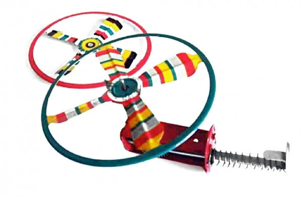 Ein Blechspielzeug mit Schwung. Die beiden Propeller werden mit Hilfe des Startapparates mit Feder in Rotation versetzt und heben ab. Sie fliegen gut und stabil.