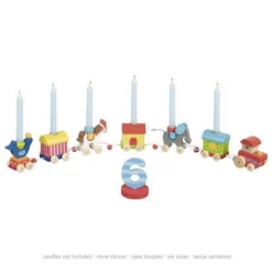 Der lustige Geburtstagszug zieht über den Tisch des Geburtstagskindes. Neben den bunten Zirkuswagons sind auch ein Elefant, ein Pferd und ein Seehund, der einen Ball auf seiner Nase balanciert, mit von der Partie! Ein buntes Spektakel zu einem ganz besonderen Tag. Auf den Wagons und den Rücken der Tiere können Kerzen angebracht werden.
