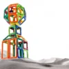 Das GeoSmart Magnetbauset GeoSphere ist eines der Grundsets. Insgesamt umfasst es 31 Teile mit Vierecken und Dreiecken, die zu vielen verschiedenen Formen zusammengesetzt werden können. Die zusätzliche Drehscheibe ermöglicht Rotationen innerhalb der Figur und macht damit viele weitere Bau-Ideen realisierbar. Sie kann ganz leicht in die Vierecke eingesetzt werden. Die 6 leuchtenden Farben schillern dank ihrer Transparenz leicht im Licht.