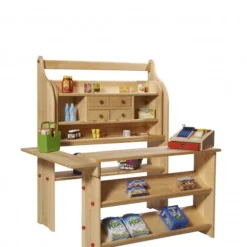 Ein Pfund Mehl bitte! In diesem schönen Kaufladen aus massivem Lindenholz macht der Einkauf Spaß. Ein Holzspielzeug von dauerhaften Spielwert!