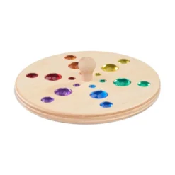 18 funkelnde Juwelen aus Acryl , die in das Holz des Kreisels eingearbeitet sind, ergeben durch einfache Drehbewegungen sehr schöne leuchtende Muster.