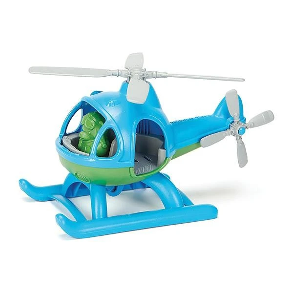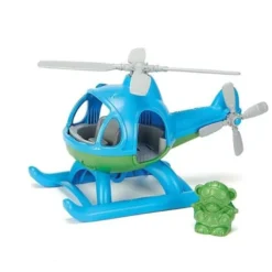 Baut doch in der Sandkiste einen Hubschrauberlandeplatz fĂŒr diesen blaugrĂŒnen Hubschrauber von greentoys. Die Rotoren können gedreht werden, der Pilot kann herausgenommen werden.