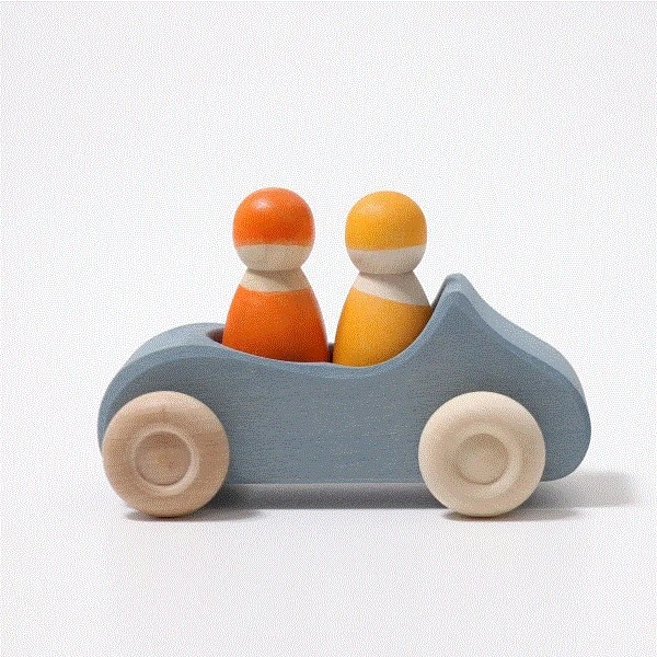 Bitte einsteigen für eine kleine Spritztour im blauen Cabrio. In dem großen schlichten Holzcabrio ist Platz für zwei kleine Holzfiguren und schon kann es losgehen. Ob drin oder draußen, das Auto ist geländegängig und ein super Spielgefährte. Und wenn die Straßen doch etwas dreckiger waren als gedacht, kann man das Cabrio einfach mit einem feuchten Lappen reinigen.