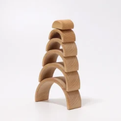 Der kleine Regenbogen von Grimm´s, hier ganz naturbelassen. Ein vielseitiges Holzspielzeug: Der Regenbogen kann eine kleine Puppen-Wiege sein, Zaun und BrĂĽcke, man kann Häuschen und Skulpturen damit bauen, und und und… NatĂĽrlich auch ein tolles Deko-Objekt.