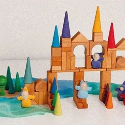 Dieses Sortiment aus Bauelementen von Grimm´s ist eine schöne Ergänzung zu anderen Bausteinen. Laubbäume und Nadelbäume aus Holz für ein fantasievolles Spiel.