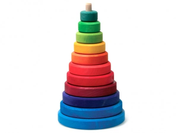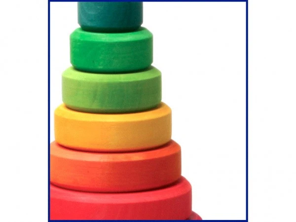 Ein gut gearbeitetes Steckspiel aus Erlenholz in harmonischen giftfreien Farben – und in Deutschland produziert. Für Kinder von ca. 1 Jahr, die Motorik fördernd, ebenso wie die Unterscheidung von Größen und Farben.