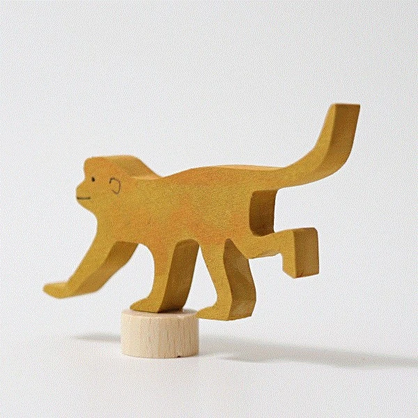 Da haben sich die Designer von Grimms wieder schöne neue Steckfiguren überlegt. Das kleine Äffchen läuft neugierig umher. Die Steckfigur wird handbemalt und ist aus hochwertigem Lindenholz produziert. Mit den Steckfiguren kann der Geburtstagkranz immer neu verändert und für das Geburtstagskind passend gestaltet werden.
