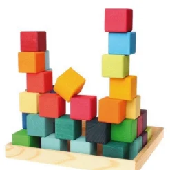 Ein ganz grundlegender Baustein ist ein Holzwürfel mit Kantenlänge 4cm. In diesem schönen Holz-Bausteinset Viereck von Grimm´s Spiel- und Holzdesign bekommen Sie 36 solcher Würfel in wunderschönen Regenbogenfarben. Angeordnet sind sie auf einem Holztablett, so können sie auch als Legespiel oder Puzzle genutzt werden.