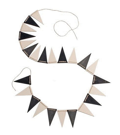 Edel in schwarz-weiß! Die schöne Wimpelkette aus Holzdreiecken von Grimm´s kann immer wieder neu verwendet werden. Die Farben werden nach Belieben aufgefädelt. Eine tolle Dekoration für das Kinderzimmer und alle Feste.