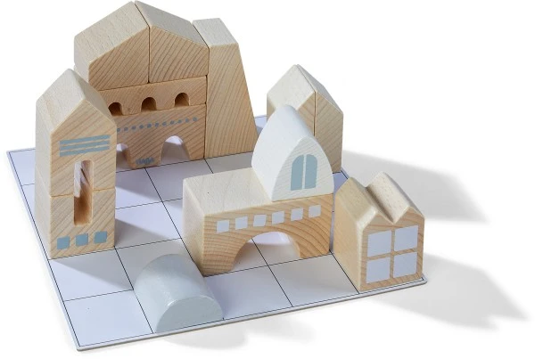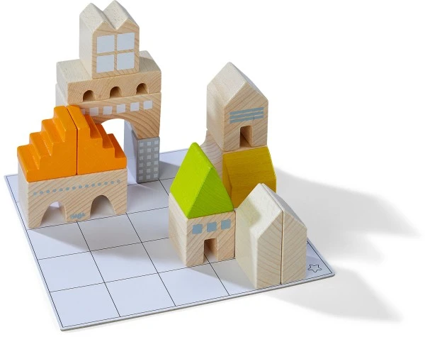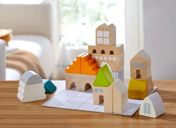 Das Haba Legespiel Logikbaumeister ist eine tolle kleine Herausforderung für Kids ab 5 Jahren. Erst wird eine Vorlagekarte gezogen und anschließend müssen die Bausteine gemäß der Vorgabe zusammengesetzt werden. Spannende Gebäude aus schönen Holzsteinen sind die Folge.