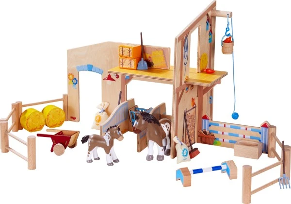 Die Little Friends Artikel gehören zu den besonders beliebten Reihen aus dem Haba Kosmos. Die liebevoll gestalteten Spielzeuge entzücken sofort und laden die Kids zum phantasievollen Spielen und Ausprobieren ein. Ganz wie bei Haba üblich, begeistern auch die Little Friends Figuren mit einer ausgesprochen hohen Qualität. • Haba Little Friends – Reiterhof Pferdeglück