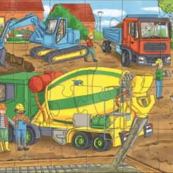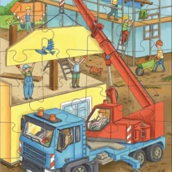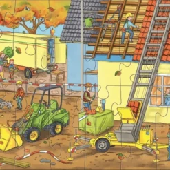 Die Haba Puzzles Auf der Baustelle zeigen unseren kleinen Entdeckerinnen und Entdeckern die aufregende Welt von Baggern, Kränen und Schubkarren. Mit jeweils 24 Teilen bieten die Puzzles eine kleine aber problemlos zu meisternde Aufgabe für alle Jungs und Mädchen ab 4 Jahren. Und wenn die Motive erst einmal zusammengepuzzelt sind: Staunen und Freude über das spannende Leben der Bauarbeiter.