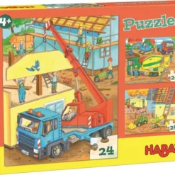 Die Haba Puzzles Auf der Baustelle zeigen unseren kleinen Entdeckerinnen und Entdeckern die aufregende Welt von Baggern, Kränen und Schubkarren. Mit jeweils 24 Teilen bieten die Puzzles eine kleine aber problemlos zu meisternde Aufgabe für alle Jungs und Mädchen ab 4 Jahren. Und wenn die Motive erst einmal zusammengepuzzelt sind: Staunen und Freude über das spannende Leben der Bauarbeiter.