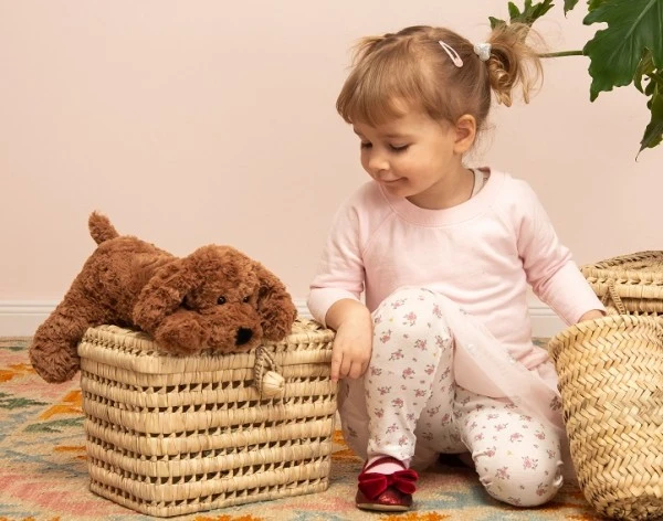 Das Hündchen lässt sich dadurch sehr gut knuddeln! Einfach süß mit den großen Knopfaugen und dem weichen braunen Fell.