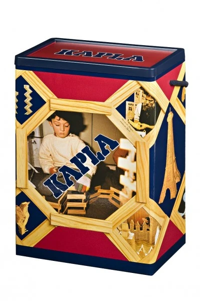 Unsere meistverkaufte Kapla-Box ist diese: 200 Kaplaplättchen in einer festen Box mit Tragekordel. Es ist eine sehr gute Einstiegsgröße, denn mit den 200 Bausteinen läßt sich schon eine Menge konstruieren. Ein Anleitungsheft ist auch enthalten. Die Holzplättchen von Kapla haben alle die gleiche Größe. Das besondere Maß von 12 x 2,4 x 0,8 cm ermöglicht besonders viele Baukreationen und macht diese Holzbausteine so einzigartig.