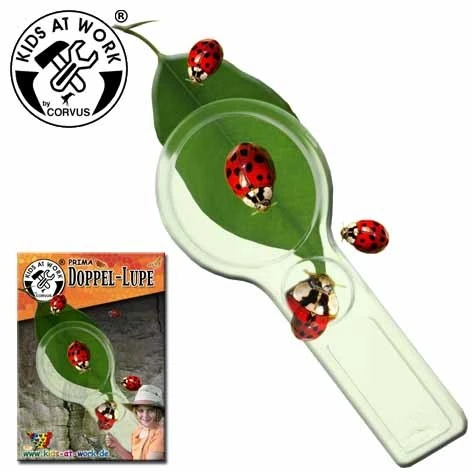 Die Kids at Work Doppel-Lupe – toll geeignet für kleine Forscherinnen und Forscher. Ab in die Natur oder doch lieber die Wohnzimmerpflanze untersuchen? Von Käfern bis zu Blütenblättern präsentieren sich die Dinge plötzlich unglaublich nah.