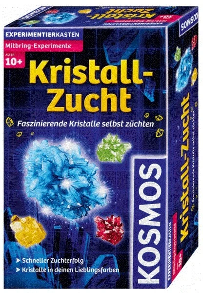 Bunte faszinierende Kristalle können mit diesem Kosmos-Experimentierkasten selbst gezüchtet werden.