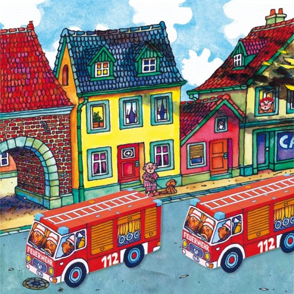8 Papp-Faltbögen sind im Set enthalten: eine tolle Idee für den Feuerwehr-Kindergeburtstag.