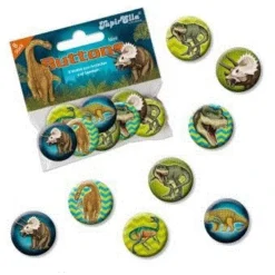 8 kleine Mini-Buttons zum Anstecken zeigen tolle Dinomotive im Set.
