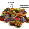 Das Innenleben besteht aus Spiegeln und bunten Perlen. Schaut man durch die Öffnung des Holzkaleidoskops in eine Lichtquelle und dreht, kann man sich an buntem Farbenspiel erfreuen.