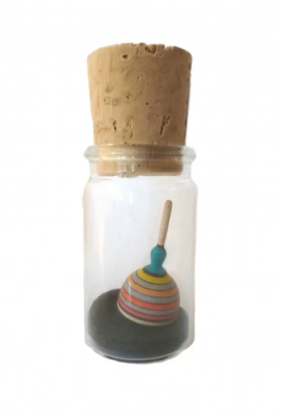 Fridolinchen ist ein kuppelförmiger Fingerkreisel mit einer Metallspitze in Miniaturform.