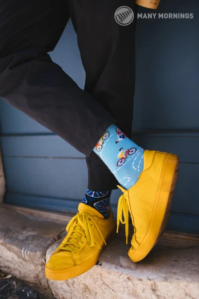 Die Many Mornings Socken The Bicycles Gr. 43-46 sind ein echter Blickfänger und bezaubern alle Fans witziger Motivsocken. Das Besondere dabei: Das Paar besteht aus zwei verschiedenen Socken mit unterschiedlichen Motiven. So bringt schon das morgendliche Socken-Anziehen wunderbar viel Spaß und auch den Tag über kommt immer wieder Freude hoch.