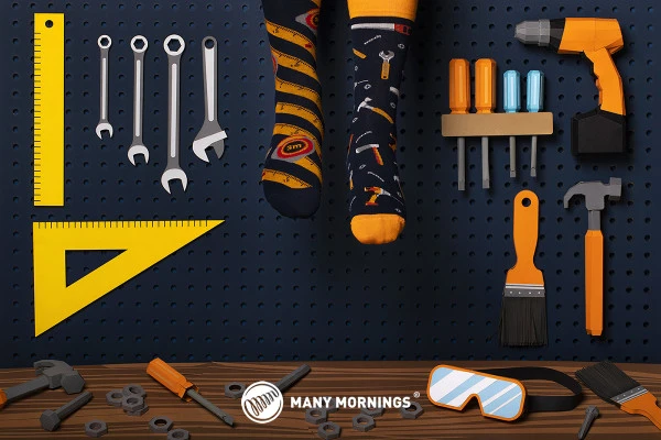 Die Many Mornings Socken The Handyman Gr. 35-38 sind ein echter Blickfänger und bezaubern alle Fans witziger Motivsocken. Das Besondere dabei: Das Paar besteht aus zwei verschiedenen Socken mit unterschiedlichen Motiven. So bringt schon das morgendliche Socken-Anziehen wunderbar viel Spaß und auch den Tag über kommt immer wieder Freude hoch.