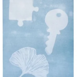 Mit dem speziellen Sonnendruck-Papier (hier in DIN A 4) aus dem moses-Verlag entstehen die tollsten Drucke – nur mit Sonnenlicht! Dazu müssen einfach verschiedene Objekte wie Blätter, Blumen oder Puzzleteile auf dem Papier platziert werden. Dieses wird dann für einige Zeit in die Sonne gelegt und danach in ein Wasserbad gegeben. Schon ändert es seine Farbe und der Druck wird sichtbar. Doch wie kann es sein, dass man nur mithilfe der Sonnenstrahlen drucken kann? Das Papier ist auf der dunkleren Seite mit eisenhaltigem Pulver beschichtet. Durch das Sonnenlicht bildet sich daraus ein blauer Farbstoff.