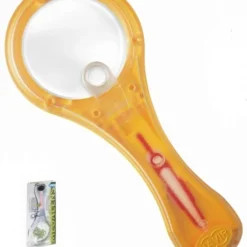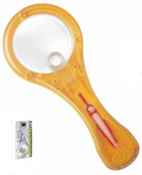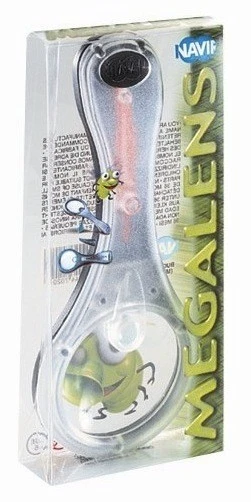 Die Megalens gibt dem kleinen oder größeren Forscher ein tolles Beobachtungsinstrument an die Hand. Im Griff der guten Lupe befindet sich eine Pinzette zum Bereitlegen des Untersuchungsobjekts. Die Lupe kann dann in der Hand gehalten werden oder mit einem Klappmechanismus aufgestellt werden. Dann hat man beide Hände frei! • ca. 19cm lang • Linsendurchmesser ca. 6cm • Farbe des Griffs variiert Achtung! Niemals mit der Lupe in die Sonne schauen, dies kann die Augen schädigen. Nicht in der Sonne liegen lassen, wie bei allen Linsen kann ein Brennglaseffekt und Feuergefahr entstehen