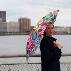 Wenn es mal wieder wie aus Eimern schüttet und der Himmel sich verdunkelt, kann der Tag schnell eine triste Note bekommen. Nicht mit diesen Regenschirmen! Ein leichtes Öffnen durch Knopf-Automatik und praktischer Handgelenksschlaufe und Schutzhülle. Als Farbklecks an einem grauen Tag bringt der Schirm mit seinem leuchtenden Design, Farbe in den Alltag!