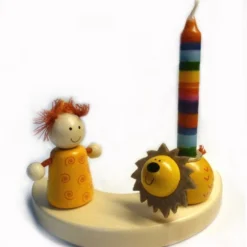 Gut gebrüllt Löwe, nun wird das Geburtstagskind angelächelt! Dieser Löwen-Kerzenhalter als Steckfigur für den Geburtstagskranz ist ca. 6 Zentimeter breit und 5cm hoch (incl. Stecker) und ergänzt den rundum-Geburtstagsring sehr gut. Die rundum-Geburtstagsstecker passen aber auch in viele andere Systeme, der Durchmesser des Steckzylinders beträgt 1,7cm.