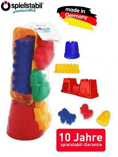 Spielstabil produziert in Deutschland unverwüstliches Spielzeug aus hochwertigem Kunststoff. Ohne PVC, ohne Phthalate, ohne BPA – geeignet für Lebensmittel, Spülmaschinenfest, d.h. viele Teile können sowohl im Sand als auch in der Spielküche verwendet werden!