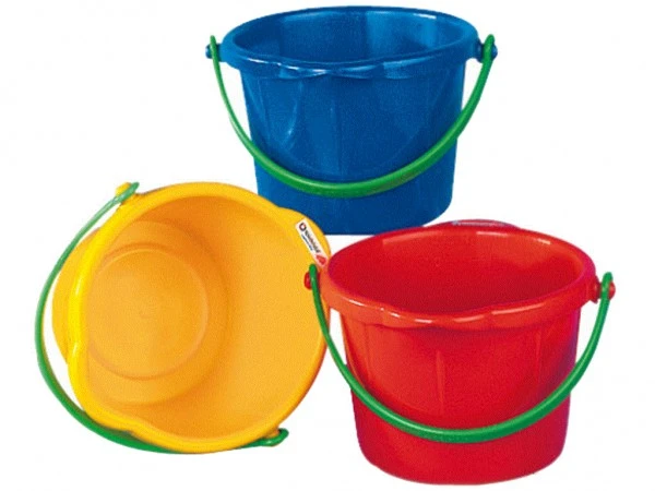 Der kleine Sandeimer ist aus einem elastischem Material, hat einen geeigneten Ausgußrand und innen eine Litereinteilung.