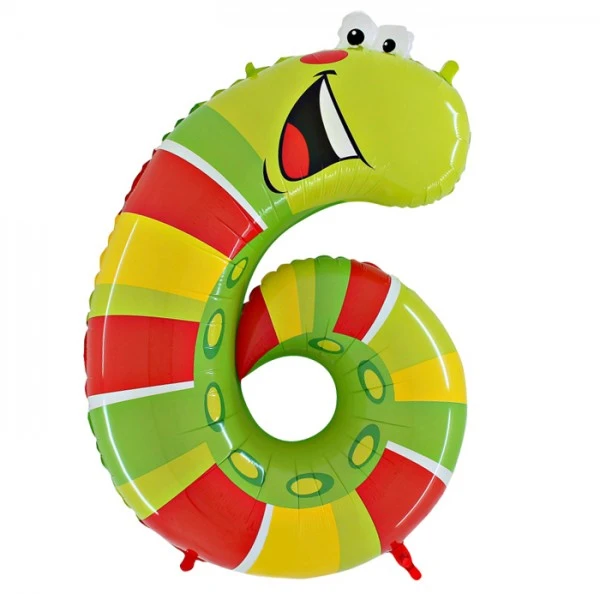 Diese farbenfrohe Animaloon-Raupe stellt die Zahl 6 dar. Der große beeindruckende Zahlenballon wird dem Geburtstagskind sicher eine tolle Überraschung bereiten. Eine super Dekorationsidee für den Kindergeburtstag.